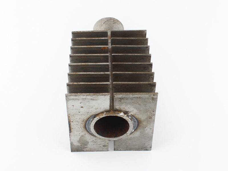 1、翅片分為兩個對稱的半片,從兩側(cè)壓緊管壁,采用電阻焊于管壁焊接,中間留有一定的縫隙;